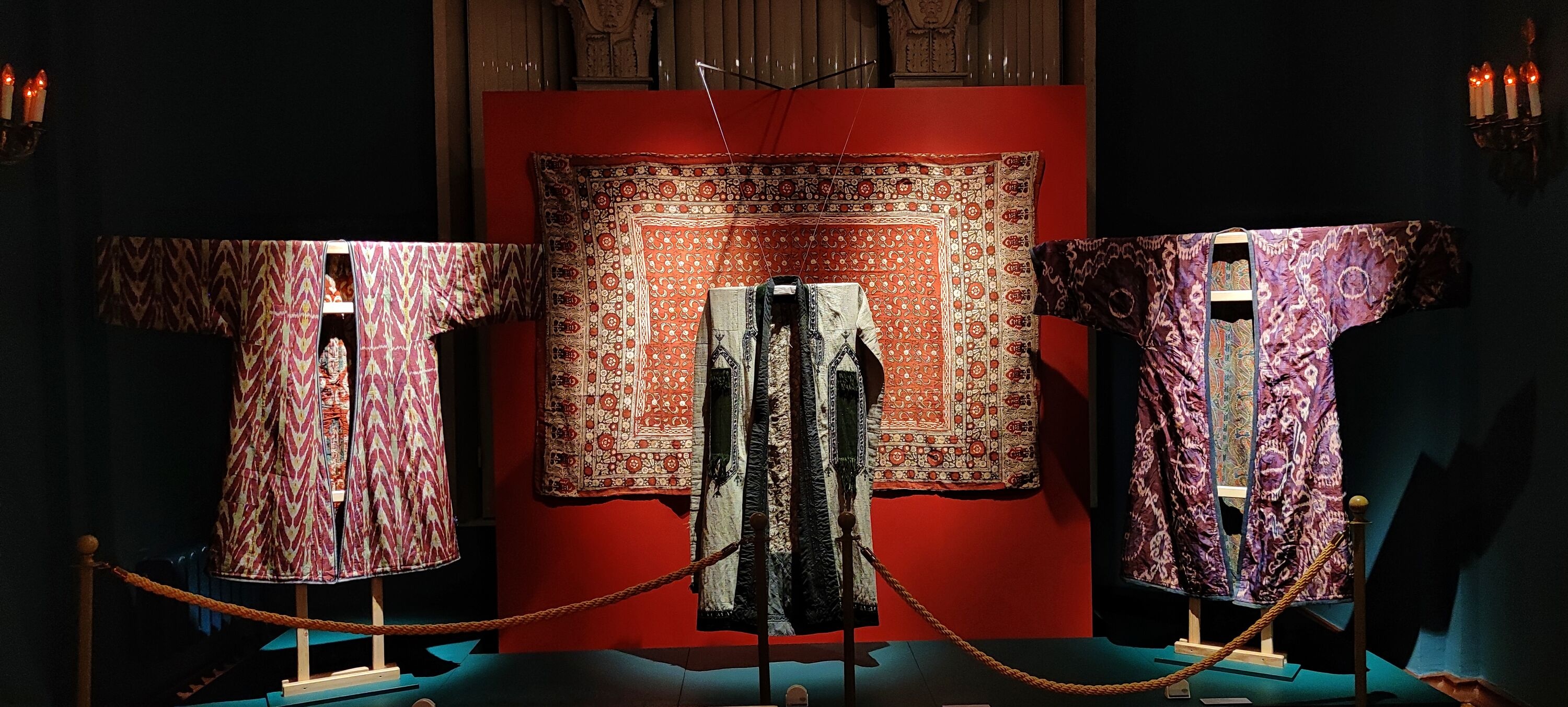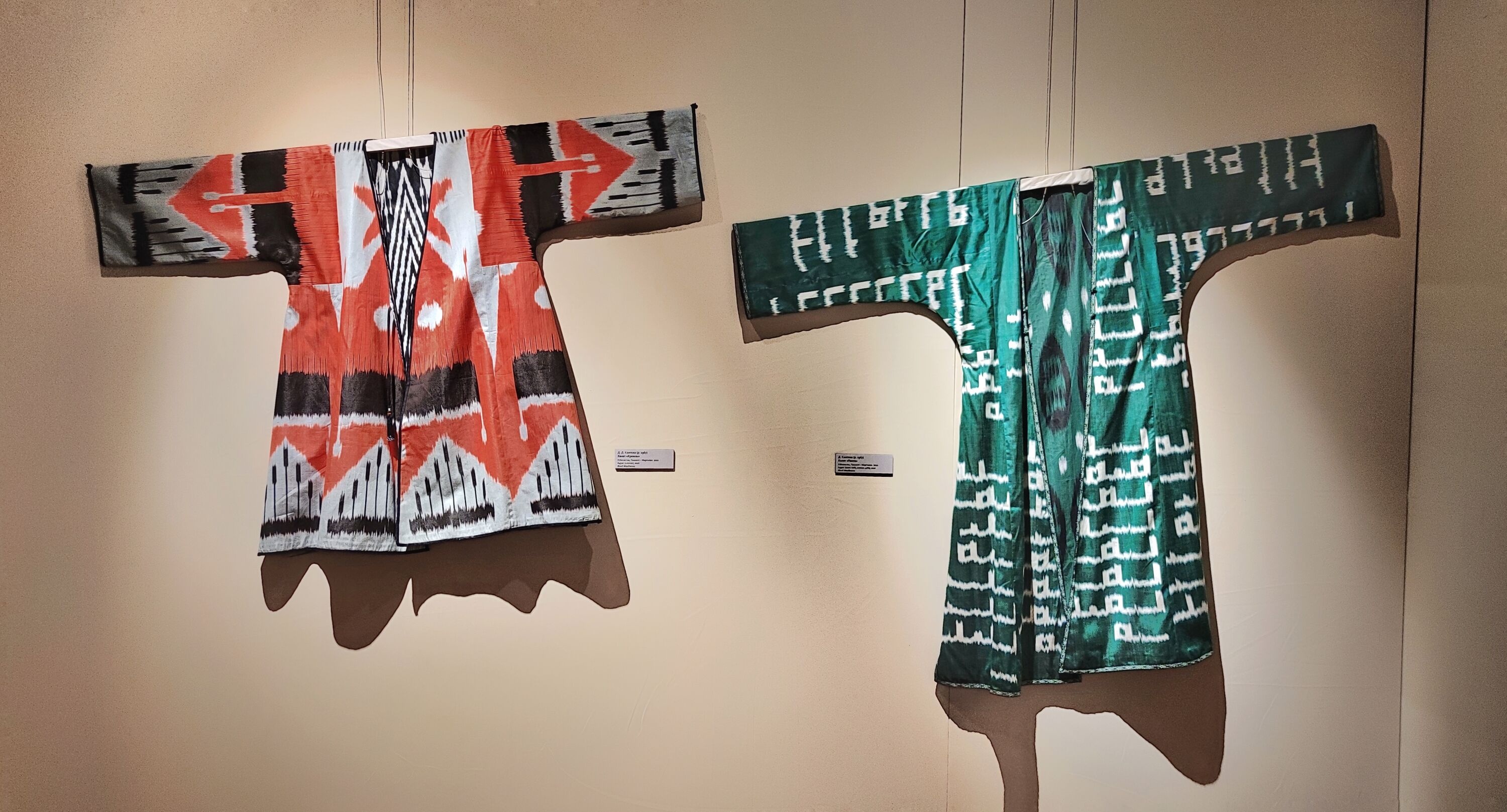 Экспозицию завершат несколько современных халатов, созданных ташкентским дизайнером Дилярой Каиповой. Ткань для них выткали мастера Маргилана (центра текстиля в Ферганской долине Узбекистана) в традиционной технике иката по авторским эскизам Каиповой.