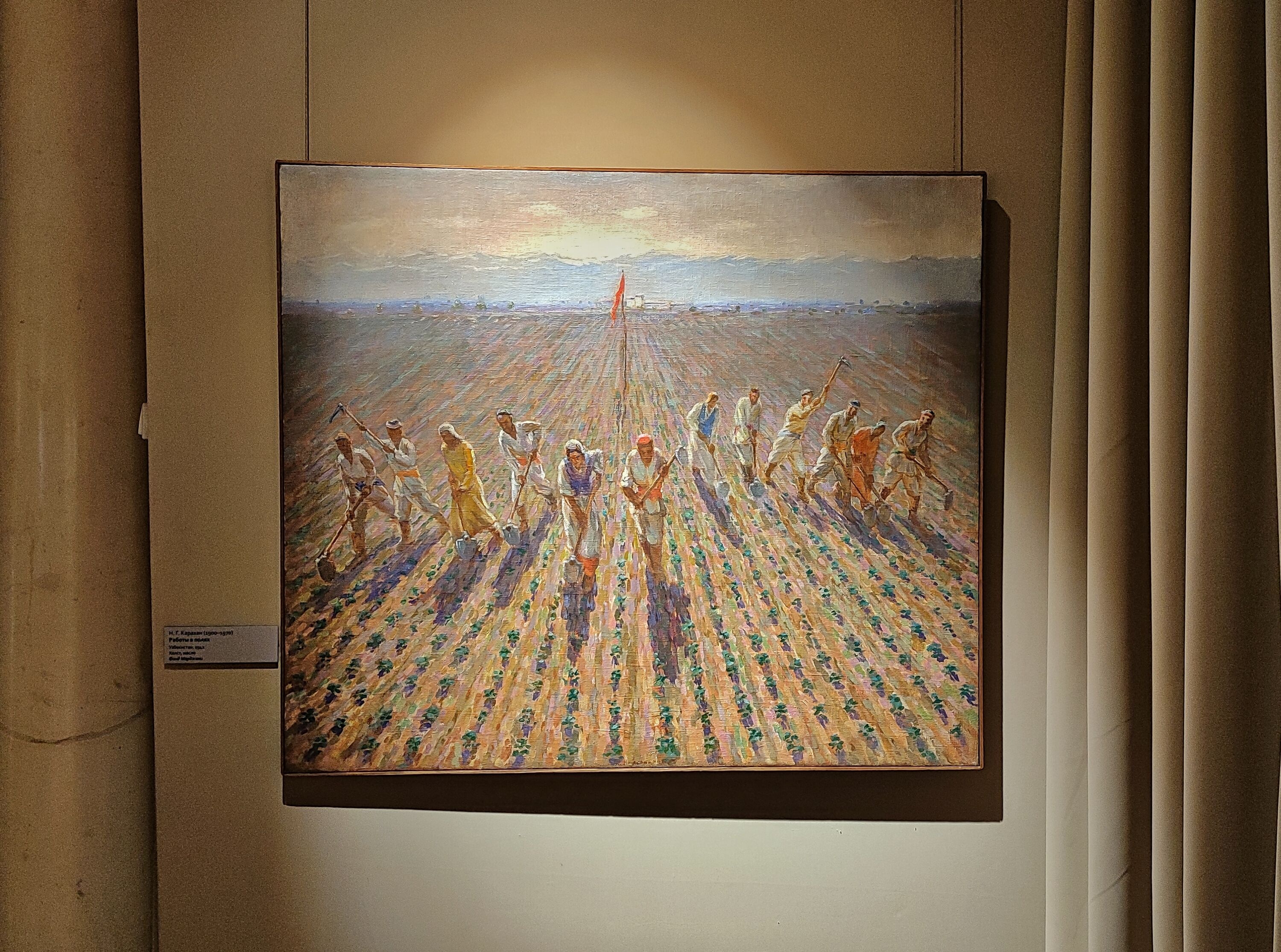 Главный раздел экспозиции включает живописные полотна, созданные известными мастерами советского изобразительного искусства: А. Волковым, А. Николаевым, М. Курзиным, О. Соколовой, В. Боборыкиным, С. Бегляровым, Ш. Мангасаровым и др.