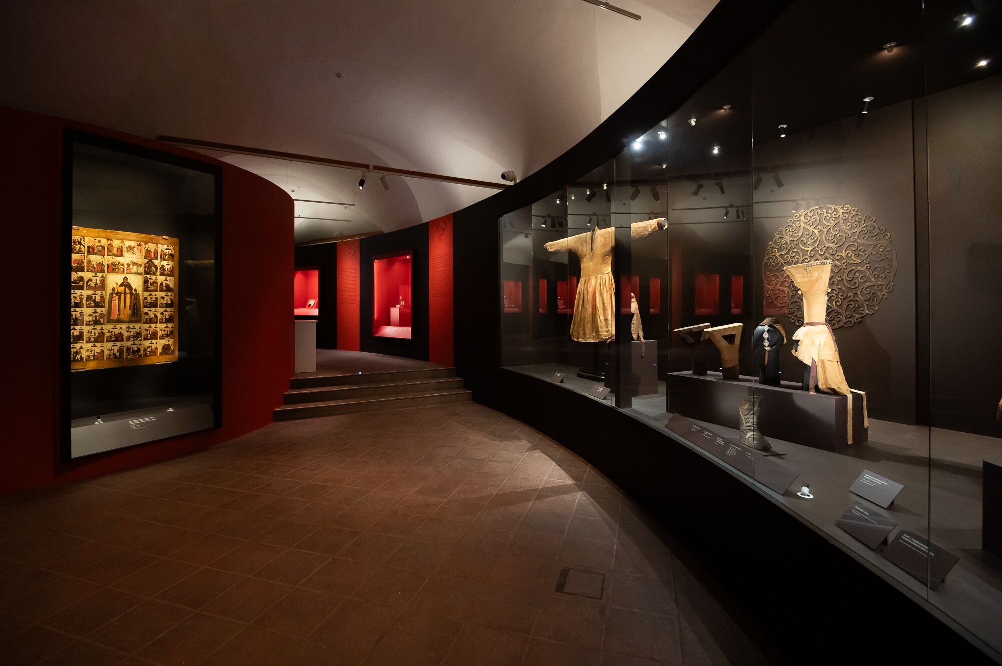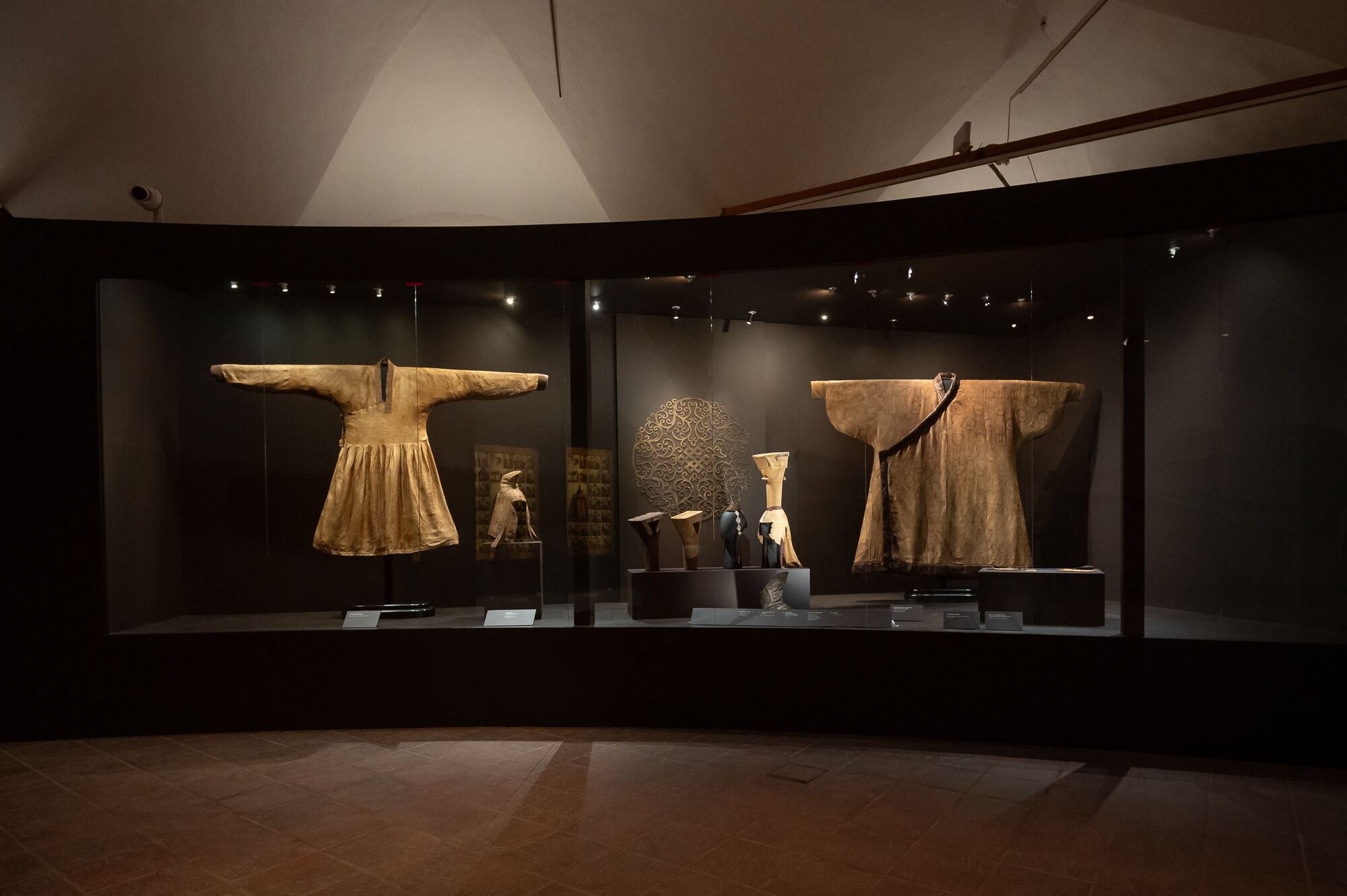 Представление о высоком династическом статусе потомков Чингисхана распространилось в Евразии в ходе монгольских завоеваний XIII–XIV веков. Укоренилось оно и на Руси, когда русские княжества на время оказались в вассальной зависимости от Золотой Орды, ставшей самостоятельным государством после распада Монгольской империи. Но отношения с Ордой не сводились к противостоянию. Современные исследования показывают многообразие русско-ордынских связей, их влияние на политические и династические традиции, торговлю, декоративно-прикладное и монументальное искусство средневековой Руси. Одним из аспектов русско-ордынских связей были династические браки XIII – начала XIV веков, когда русские князья женились на представительницах рода Чингисхана. Тема ордынских браков проиллюстрирована великолепным комплексом одежды монгольской аристократки с высоким головным убором (боккой) последней трети XIII – первой половины XIV веков из коллекции Фонда Марджани.
