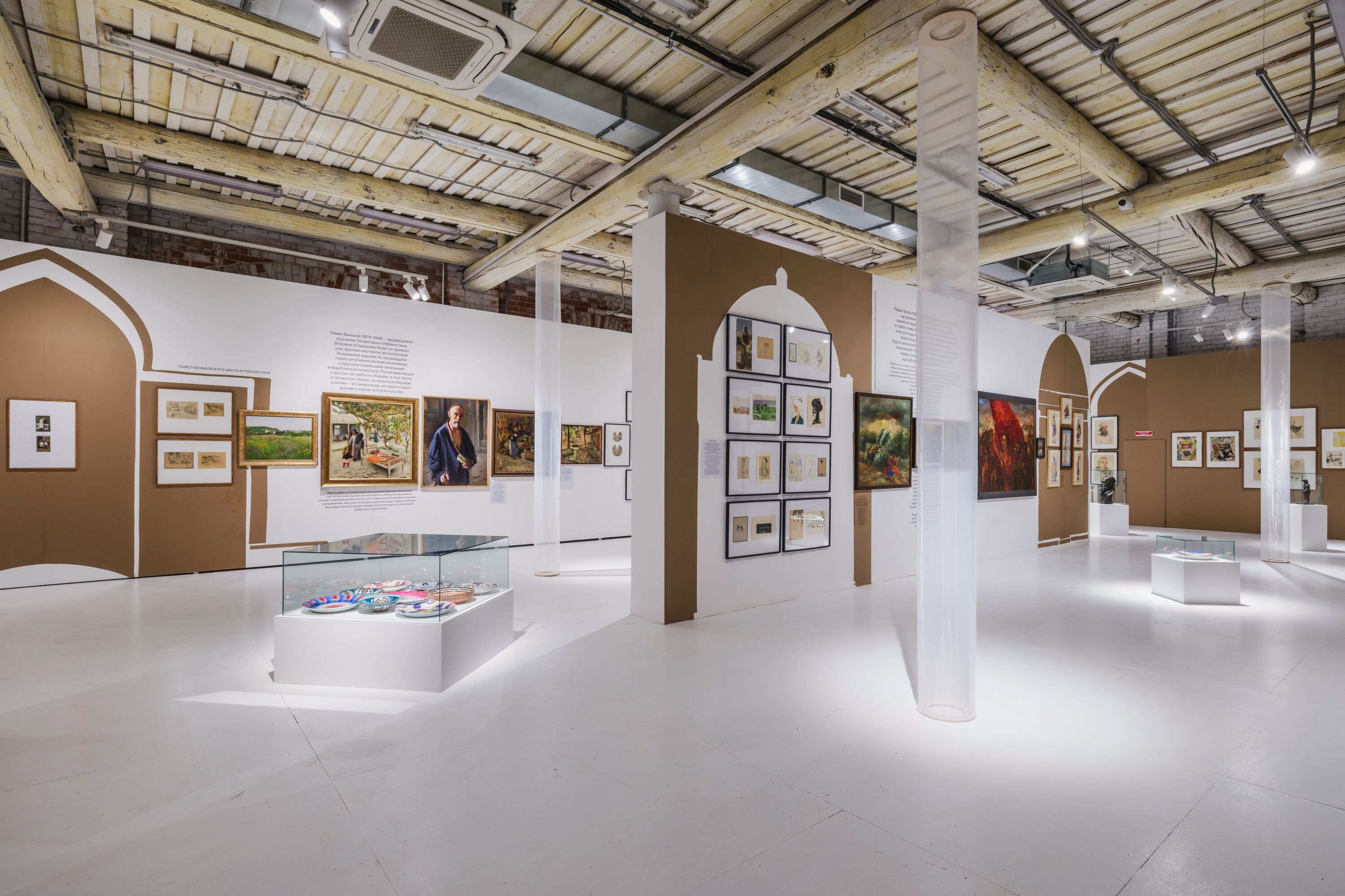 Экспозиция выставки выделяет несколько героев и сюжетных линий, раскрывающих глубину интеллектуальных и художественных связей двух регионов. Ими станут художник и педагог Павел Беньков, создавший в Узбекистане новую школу искусства; сын татарского писателя Хади Такташа искусствовед Рафаил Такташ, посвятивший жизнь изучению и популяризации искусства Узбекистана; основоположник татарской живописи Баки Урманче и его малоизвестный период жизни в Казахстане и Узбекистане; Михаил Курзин — график, педагог, выпускник Казанского художественного училища, один из лидеров сибирской и узбекской художественной сцены, а также ярчайший представитель «туркестанского авангарда» Александр Волков.